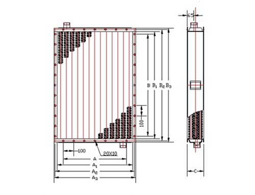 举例:SRL12×5/3表示:表面长1250mm,宽545mm,由3排散热管组成。